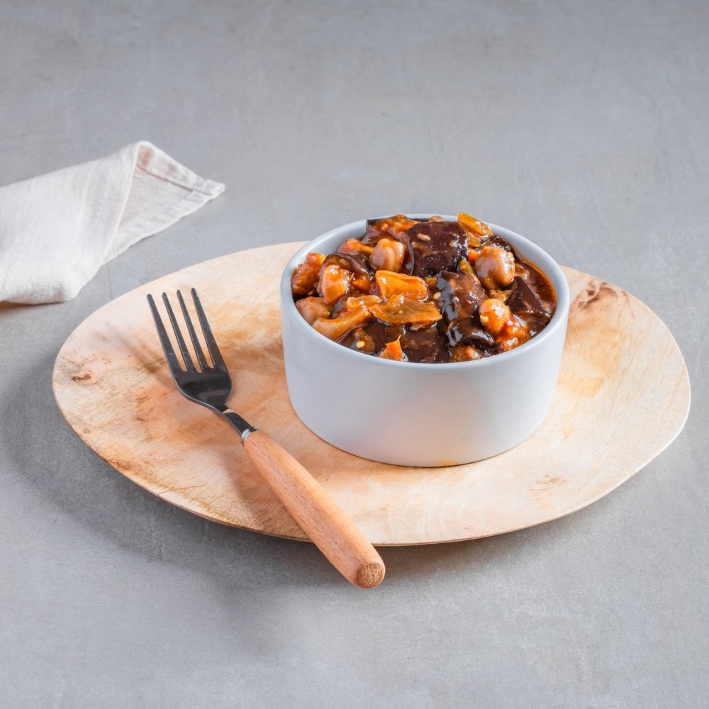 קוביות חציל מטוגנות ברוטב פיקנטי עדין מעורר השראה