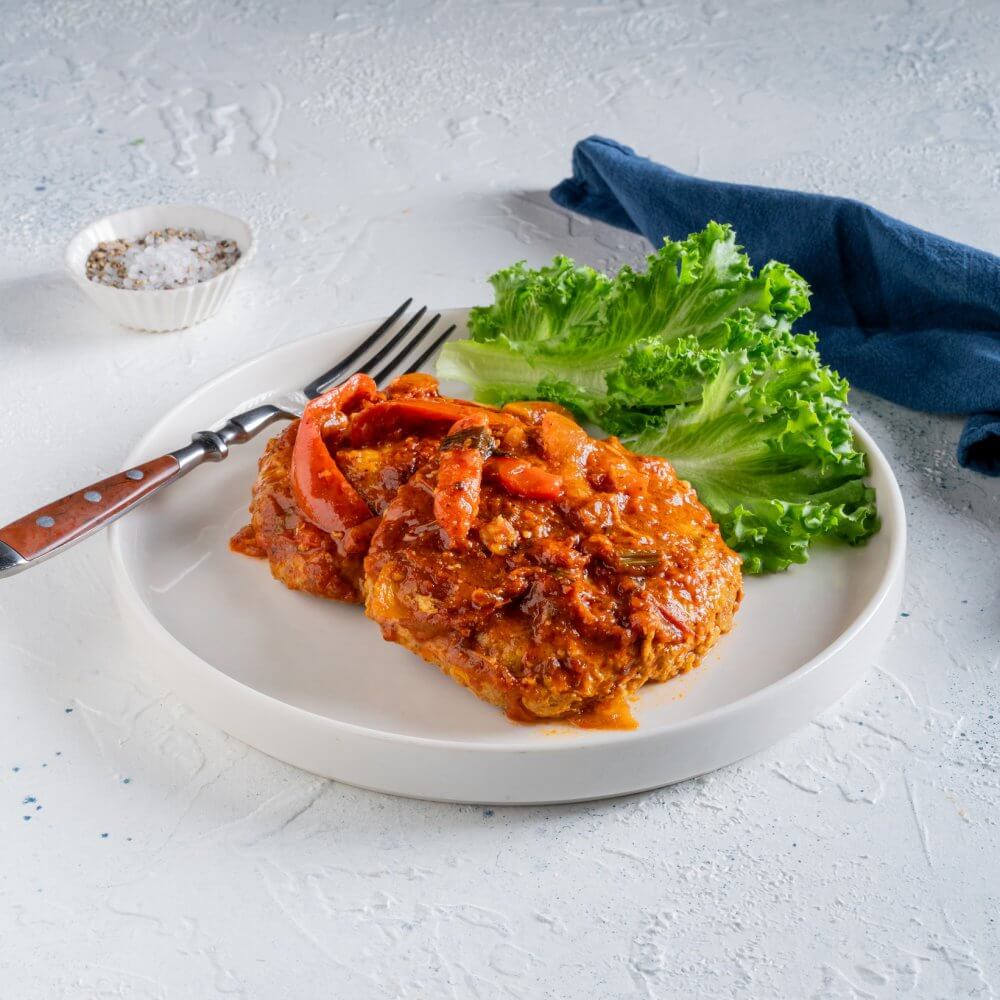 פרוסות חציל במילוי בשר בקר בבישול איטי ברוטב עגבניות