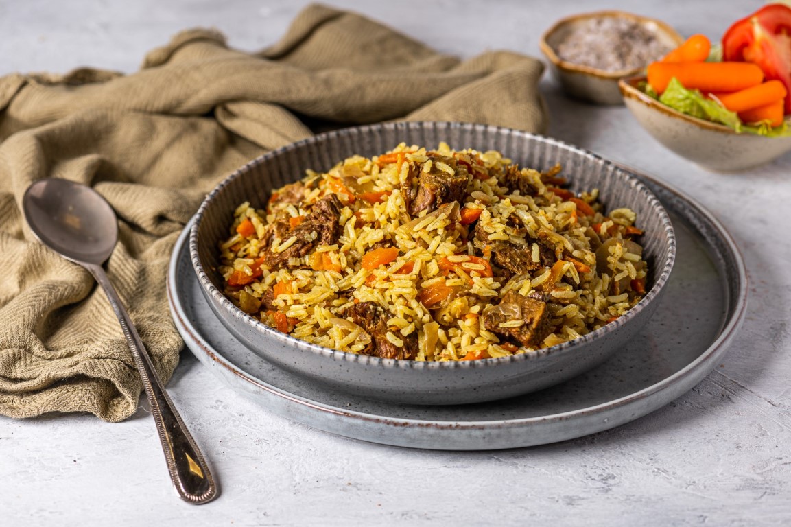 מהמטבח הבוכרי – תבשיל אושפלאו משובח של אורז ונתחי בשר בקר עם גזר ובצל