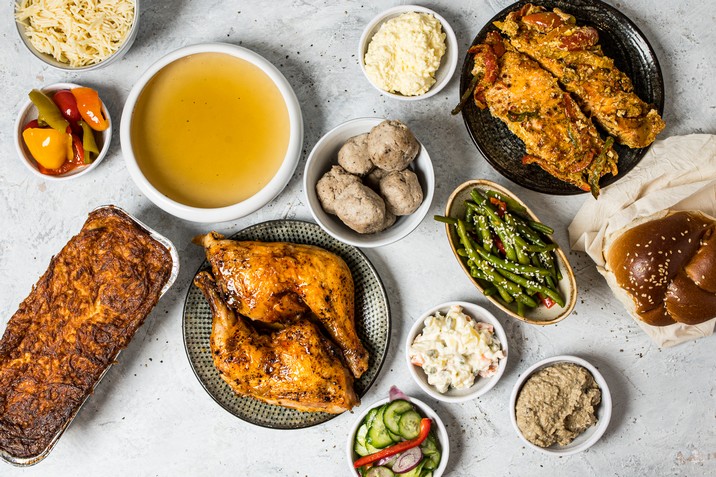 סעודת ליל שבת בסגנון אשכנזי לחמישה סועדים קומפלט. כוללת חלות וסלטים, דגים, מרק, מנות עיקריות ותוספות. לכם נותר רק לחמם ולהגיש! פירוט מלא בפנים